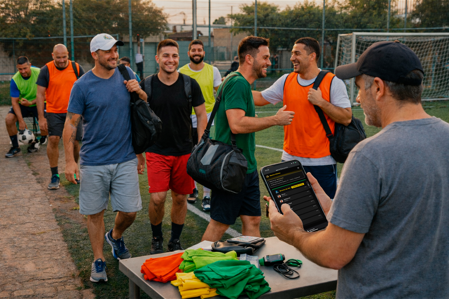 Depois de jogar, os resultados da rodada entram no sistema e retroalimentam os rankings e a memória esportiva do racha para os próximos sorteios.